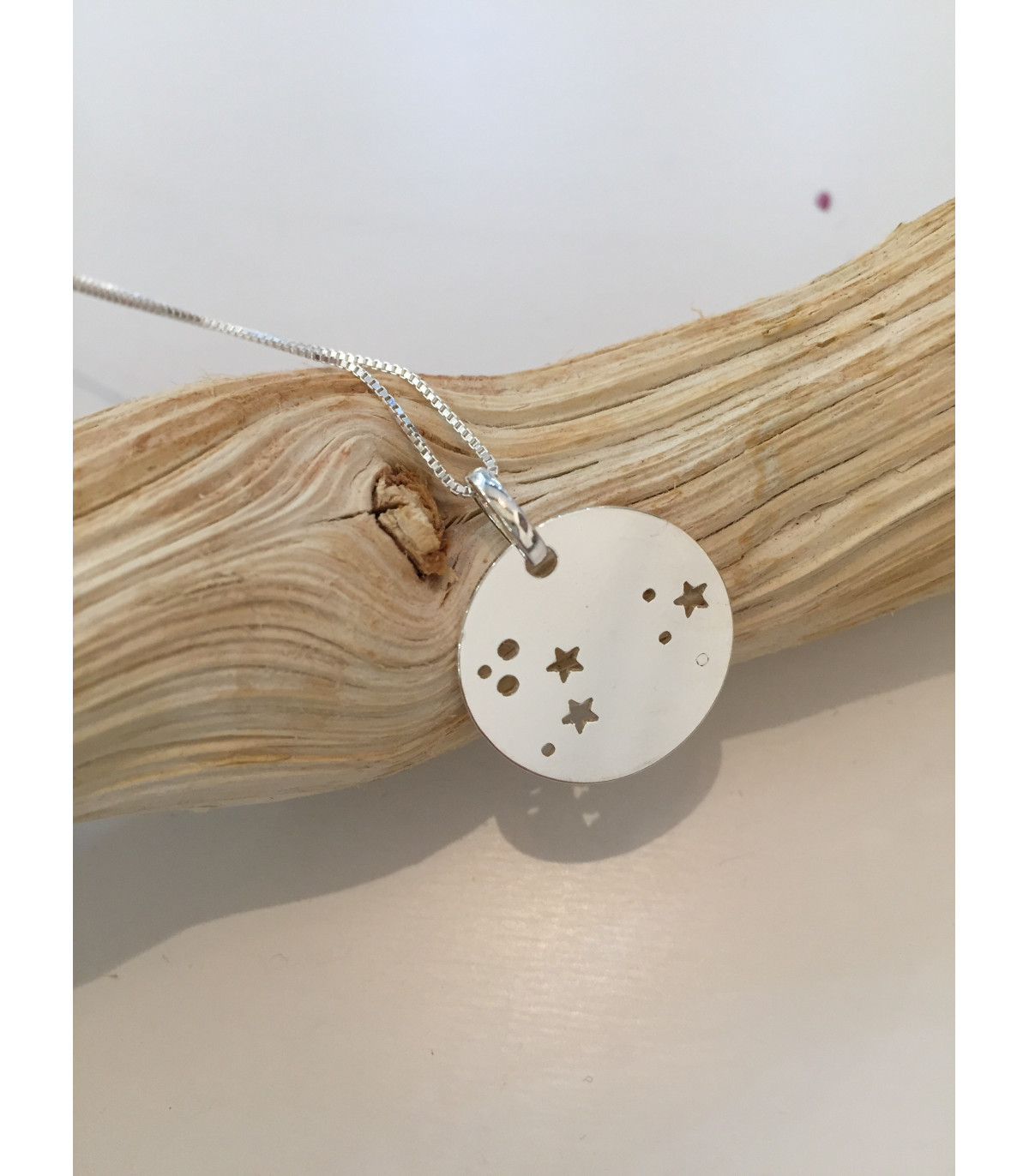 Elle est montée sur une chaine en argent de 40, 50 ou 65 cm, afin de pouvoir els porter en ras de cou, de les mixer avec d'autres bijoux, ou bien de les porter en sautoir.