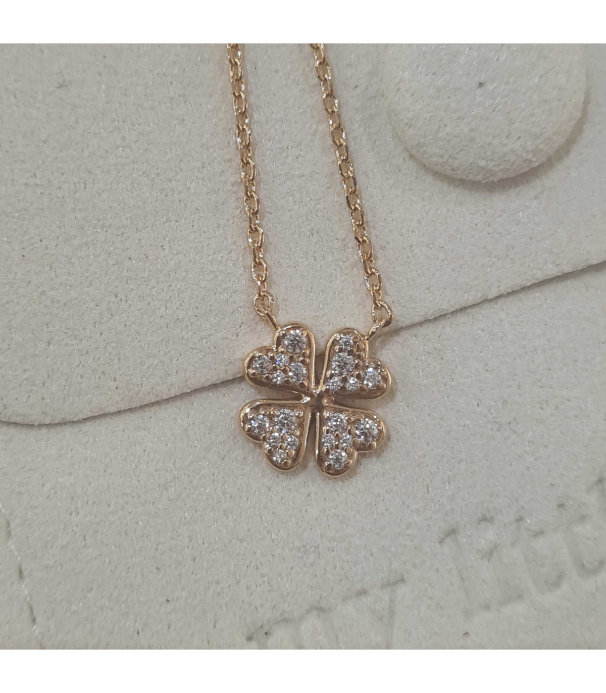 This pretty necklace features a zirconium-paved clover mounted on a gold-plated chain.
