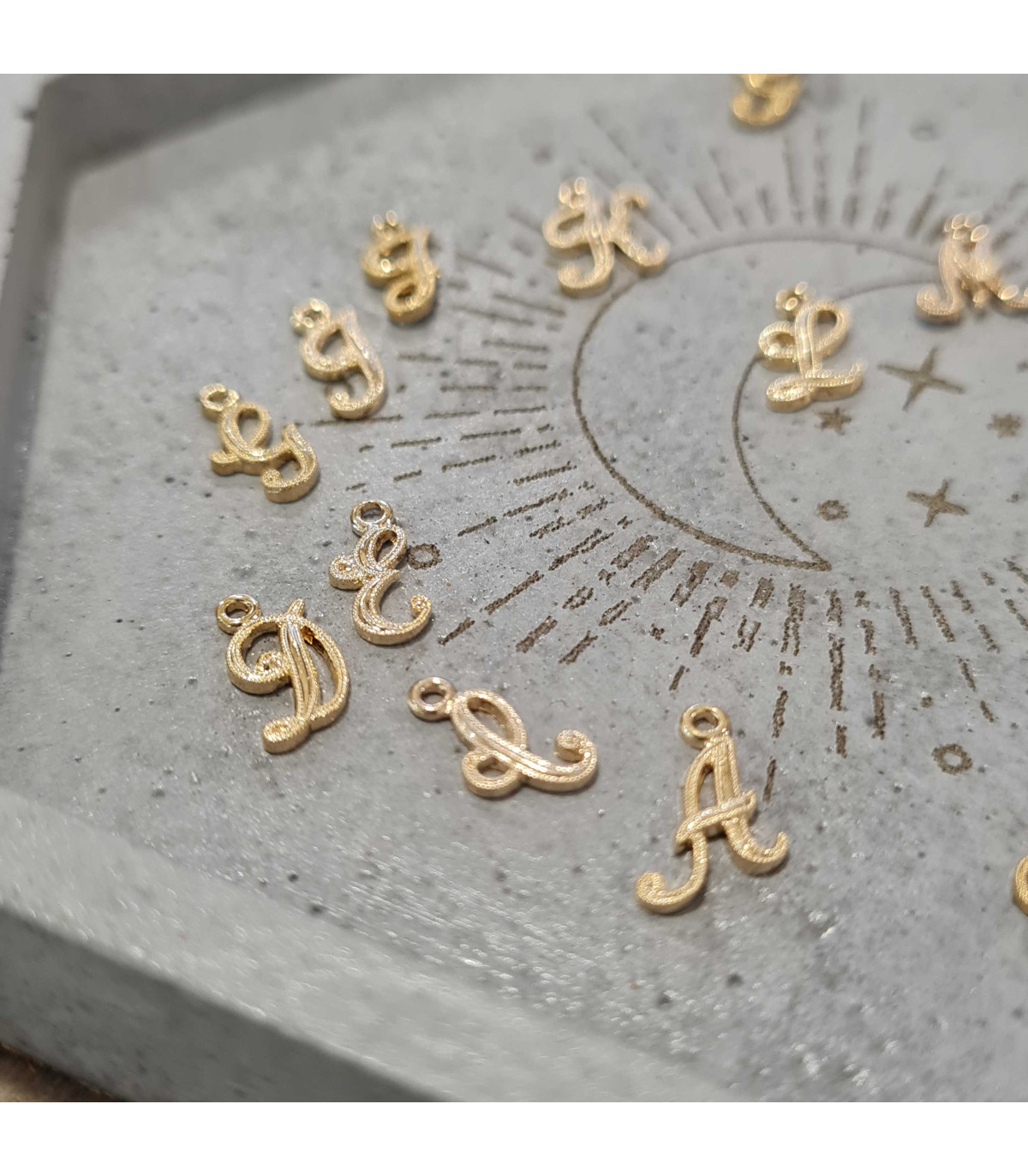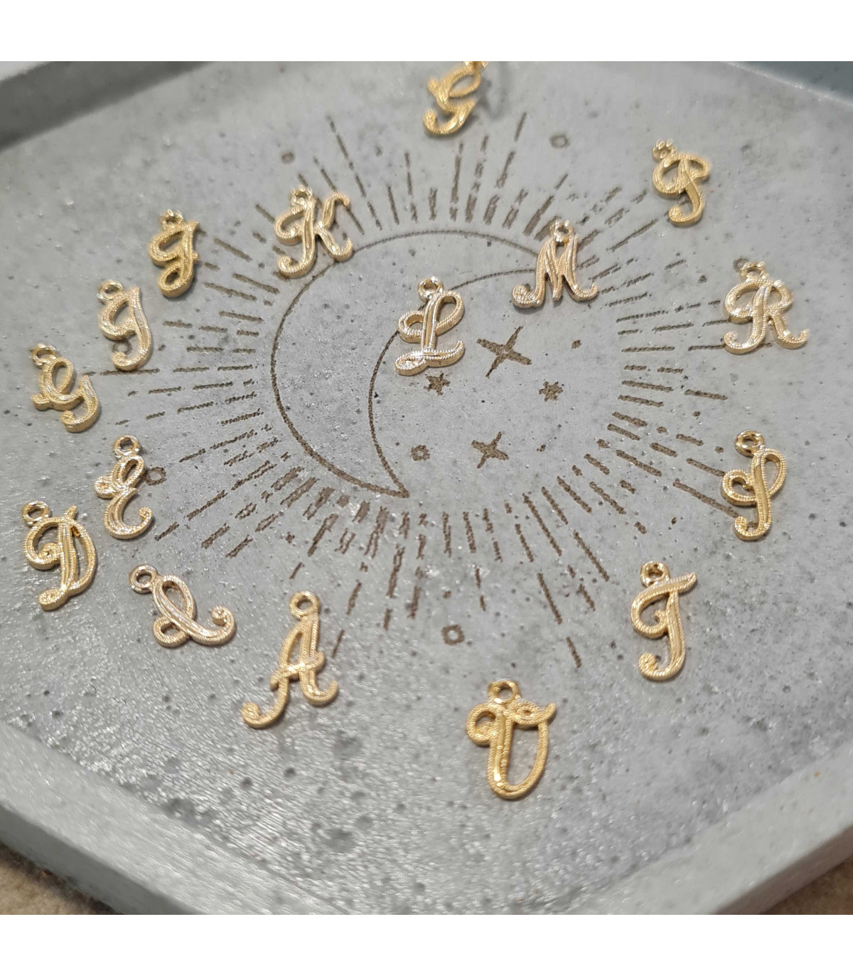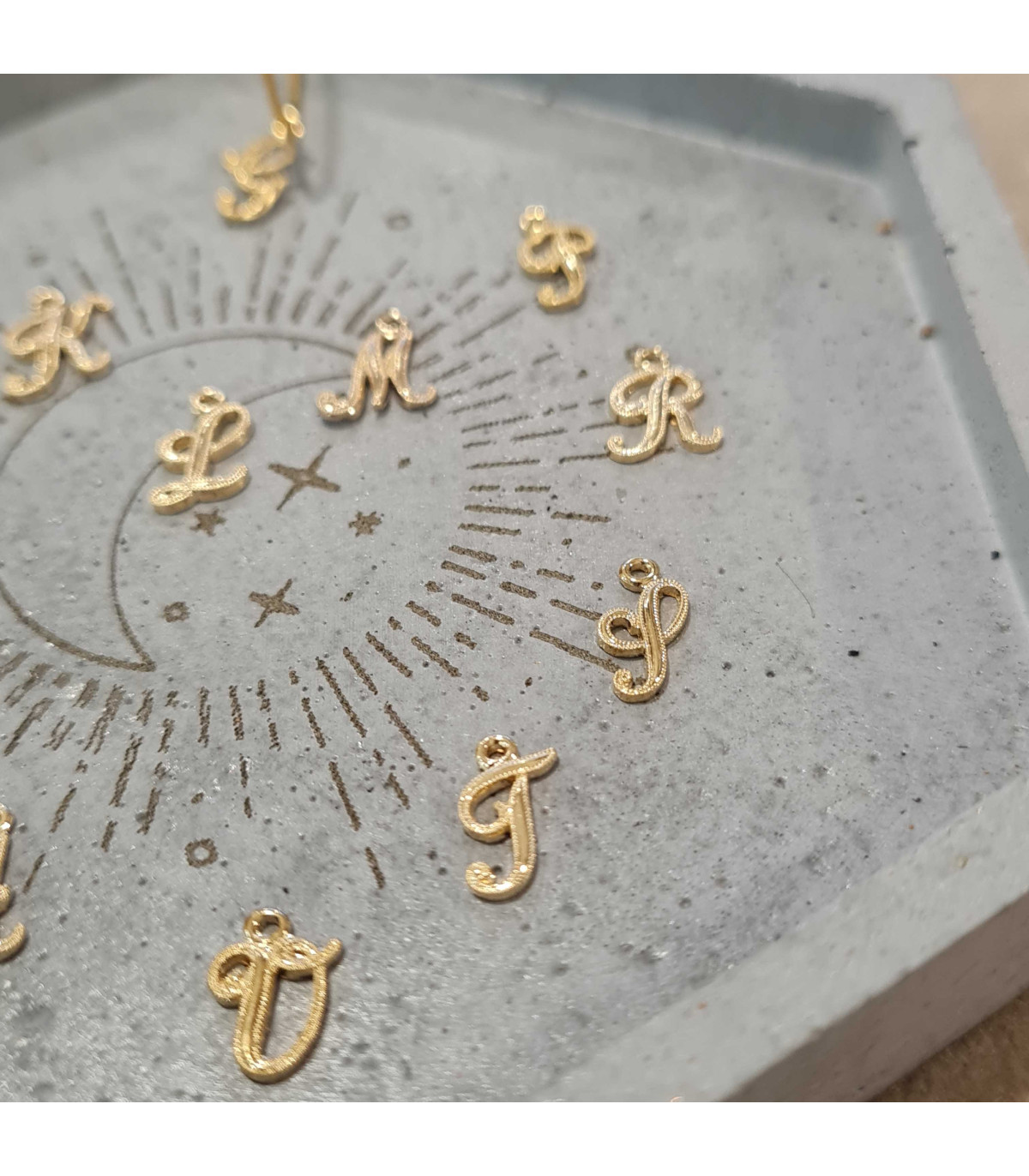 Mono créole fine réhaussée d'une lettre manuscrite en plaqué or.