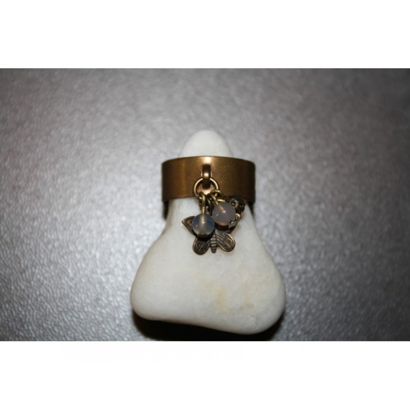 Bague composée de plusieurs pampilles : un mini papillon, deux perles assorties, en agate. Taille réglable. Un bijou Mila Création pour My Little Bijou.