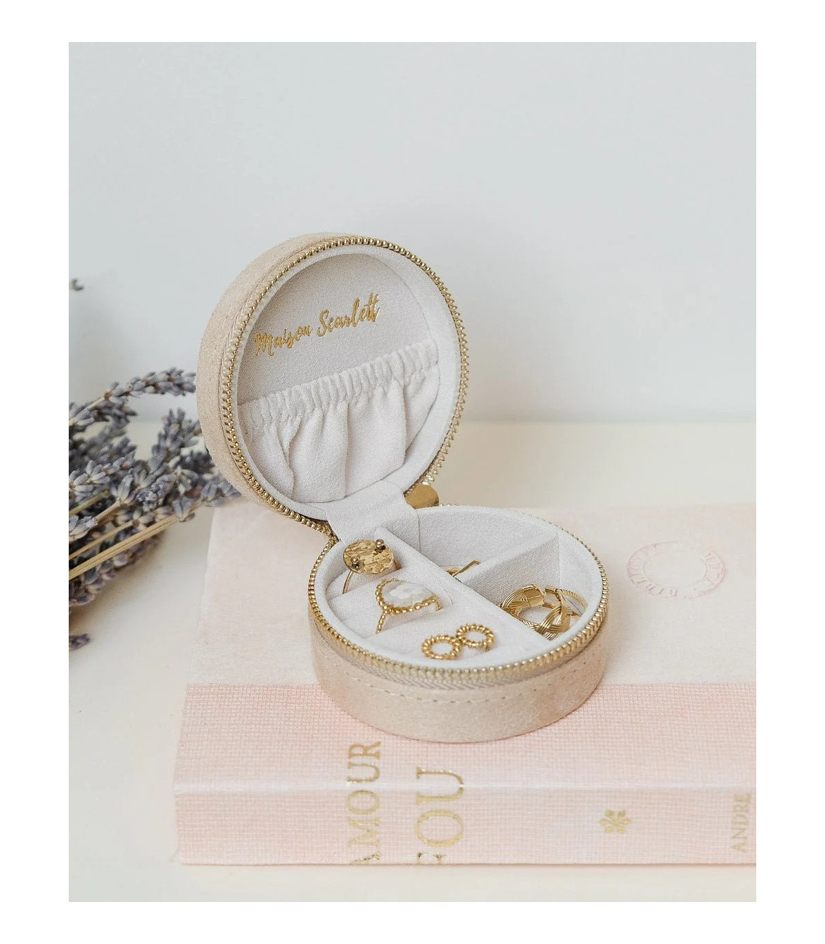 YVONNE, la boîte à bijoux de voyage de Maison Scarlett est idéale et deviendra sans nul doute l’alliée de toutes vos aventures ! C'est un petit format très fonctionnel pour vos activités quotidiennes. En lin crème ou Rose pale, elle est mignonne, compacte et se glisse aussi bien dans un sac à main que dans une valise.