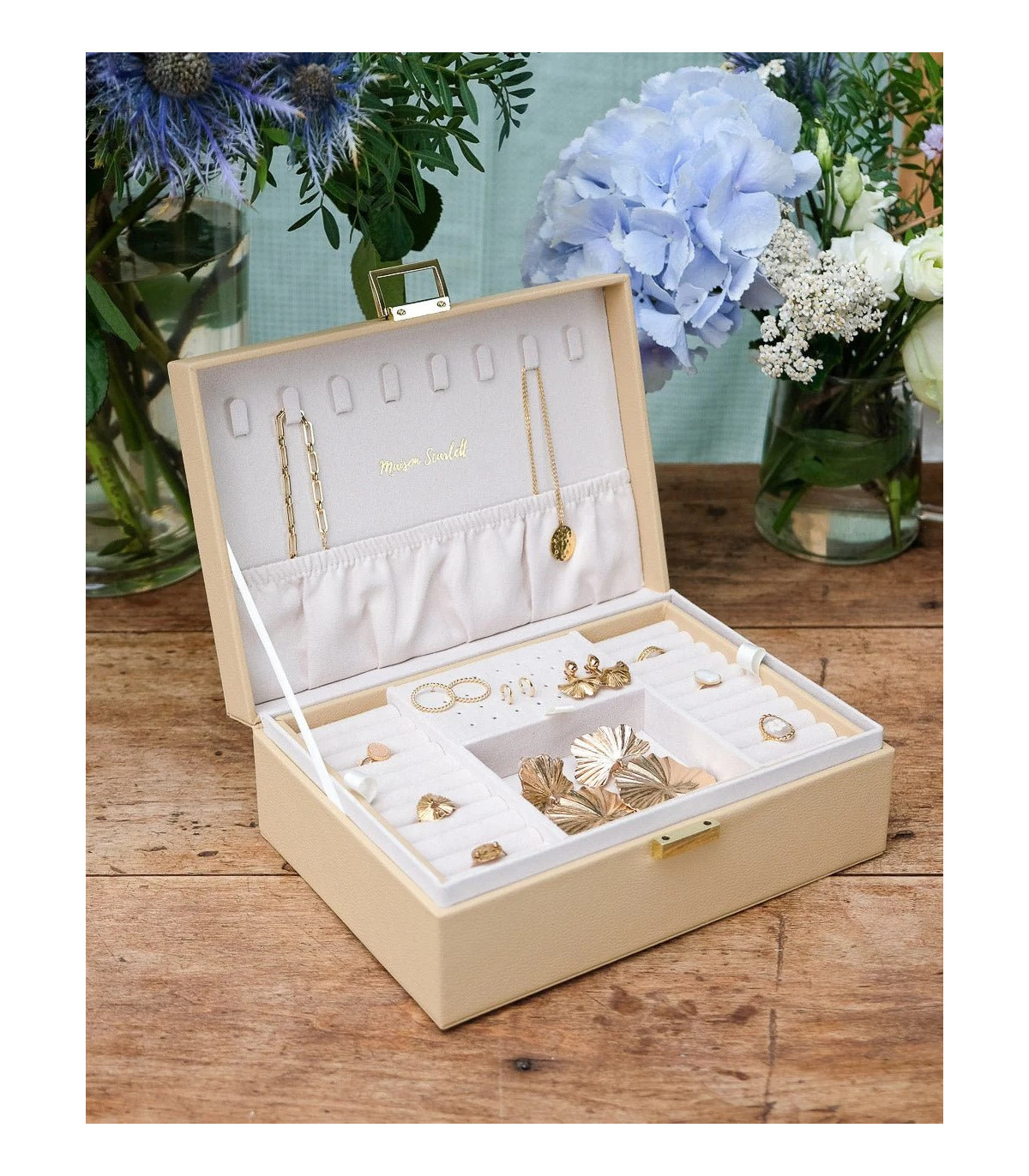 Grande Boîte à bijoux LOUISE Cuir Beige