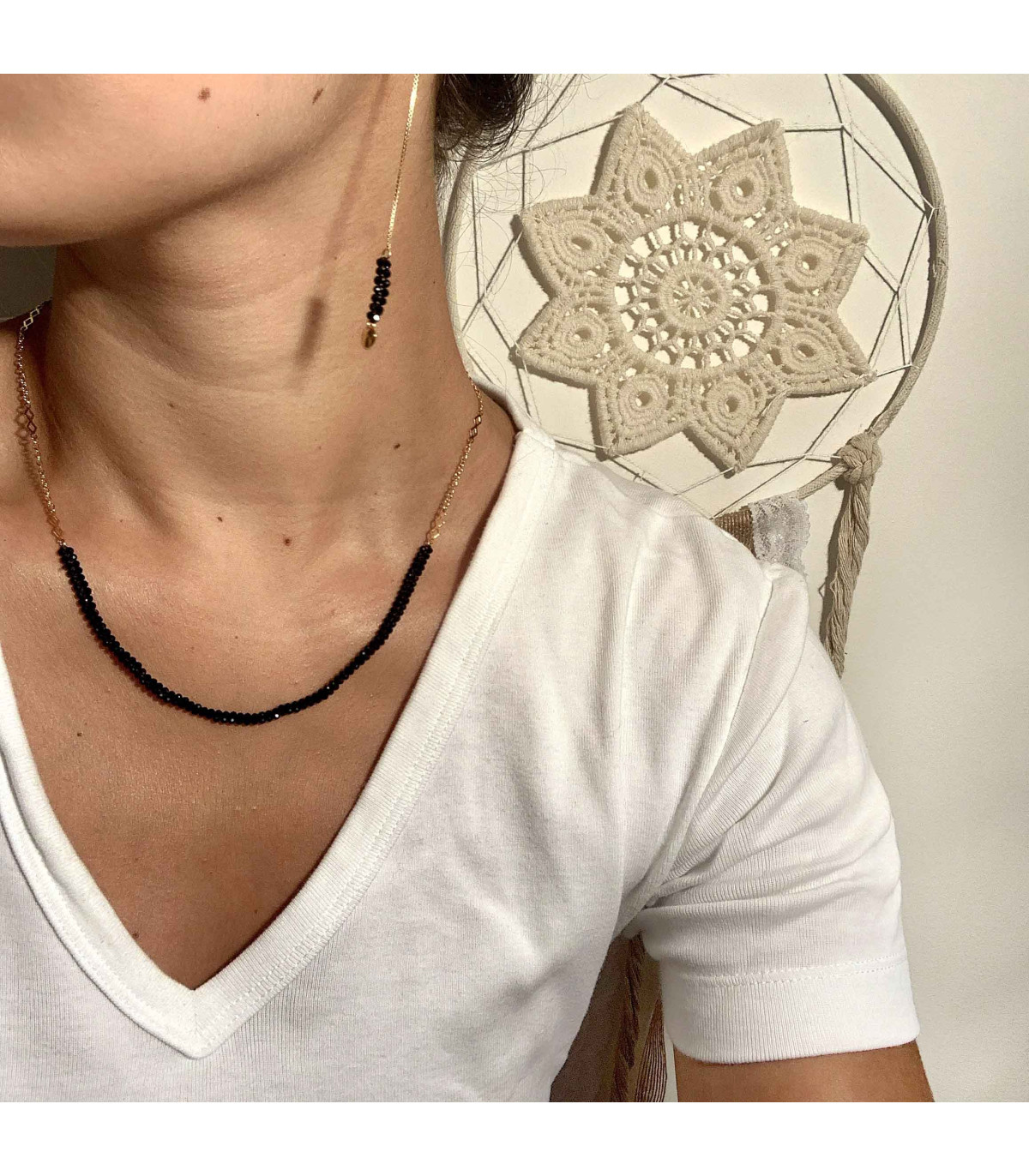 La chaine et la pampille martelée sont en plaqué or.