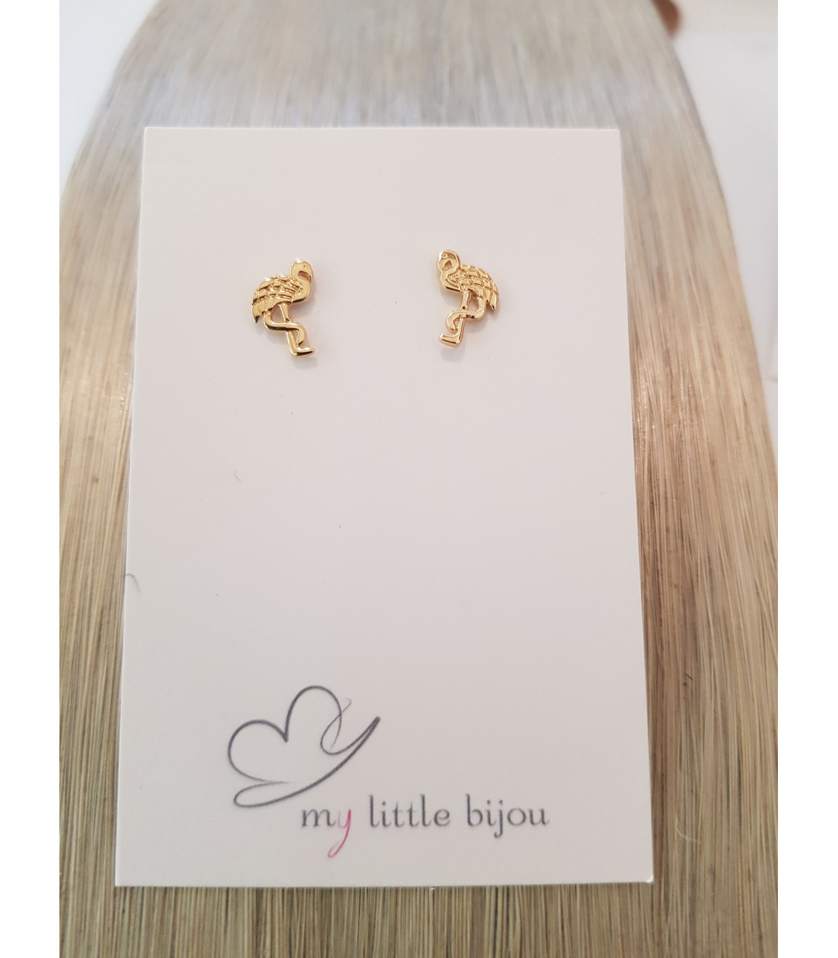 Un flamand rose en argent ou plaqué or monté sur une boucle d'oreille puce.