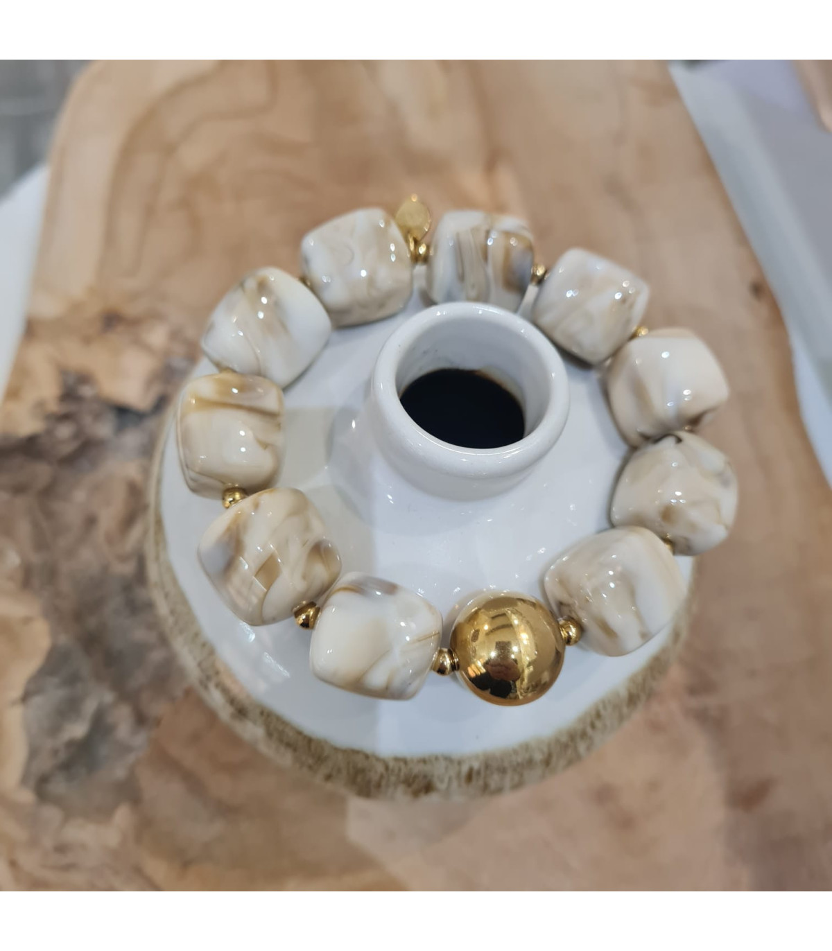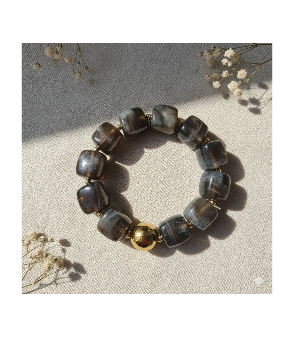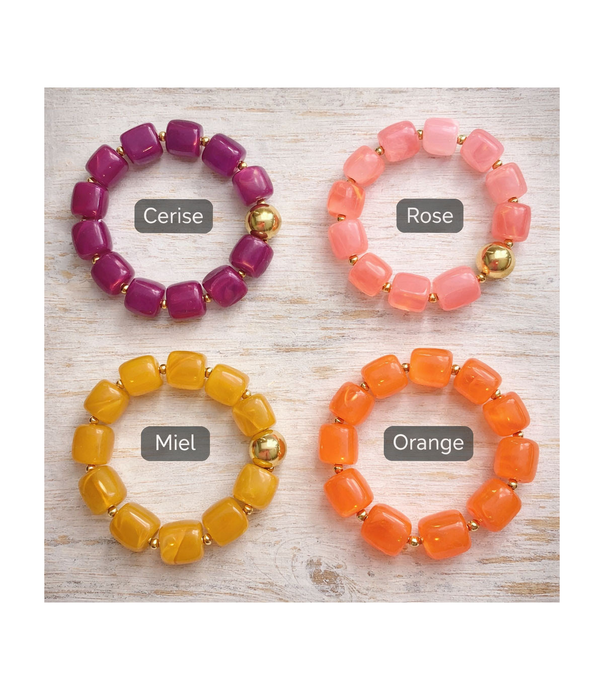 Tendance de cette nouvelle saison, le bracelet aux perles Cube en Résine. Dispo dans un dégradé de couleurs automnale, Anthracite, Latte, Multicolore, Blanc Cassé, et beige