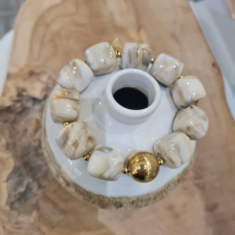 Tendance de cette nouvelle saison, le bracelet aux perles Cube en Résine. Dispo dans un dégradé de couleurs automnale, Anthracite, Latte, Multicolore, Blanc Cassé, et beige