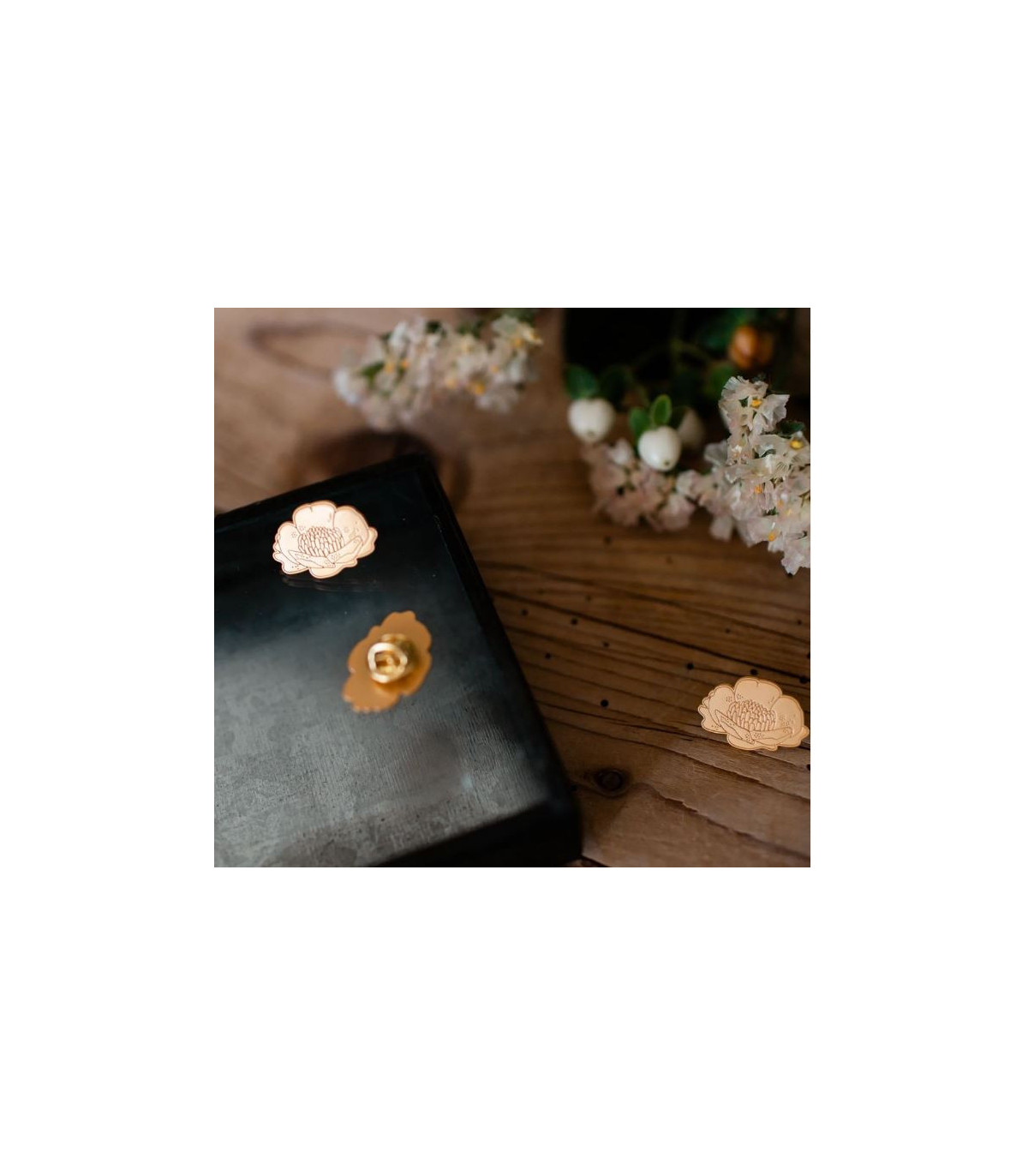 Une fleur en laiton doré montée sur un Pin's, à porter sur le revers d'une veste, ou d'une chemise pour pimper vos tenues de rentrée.