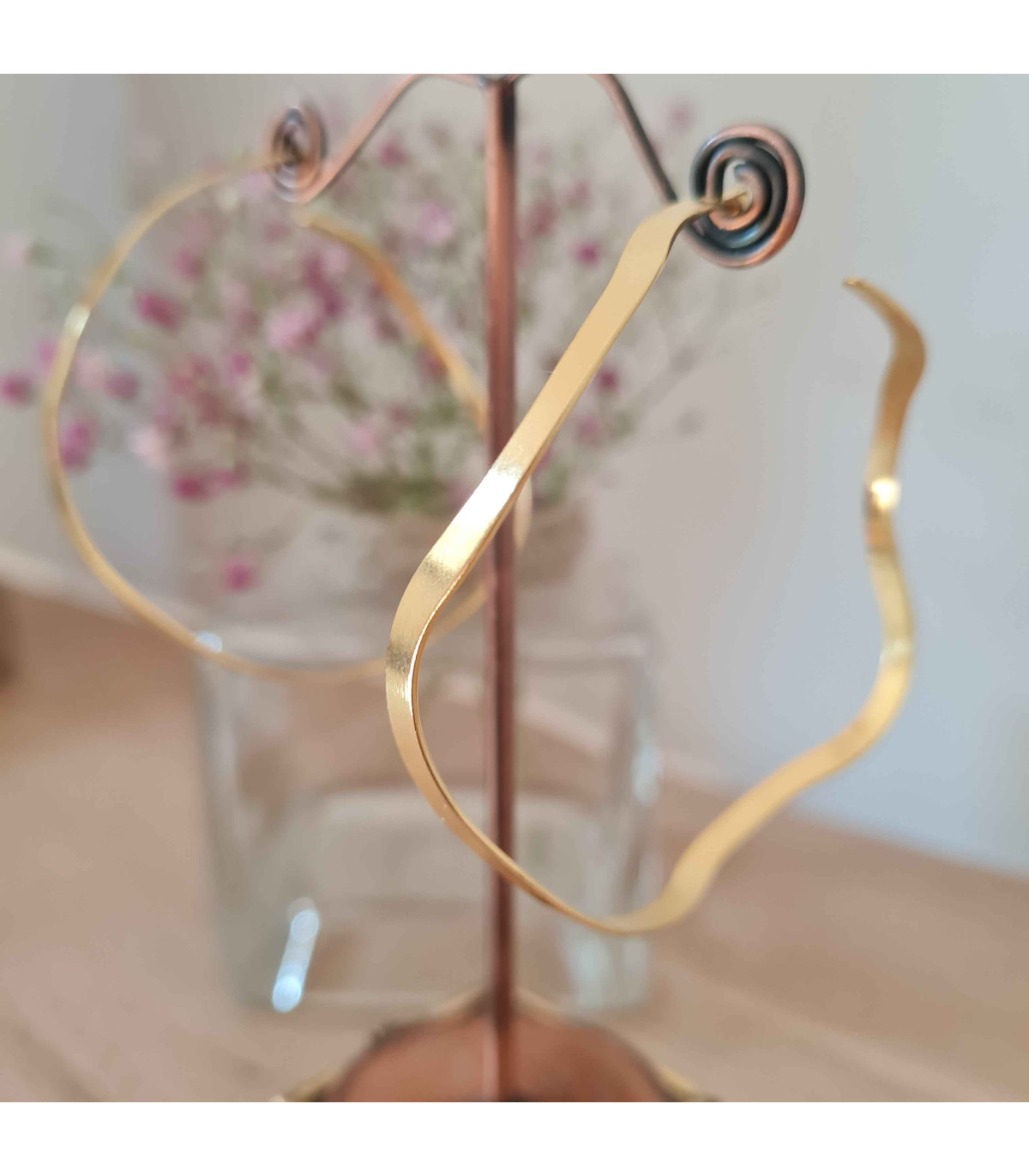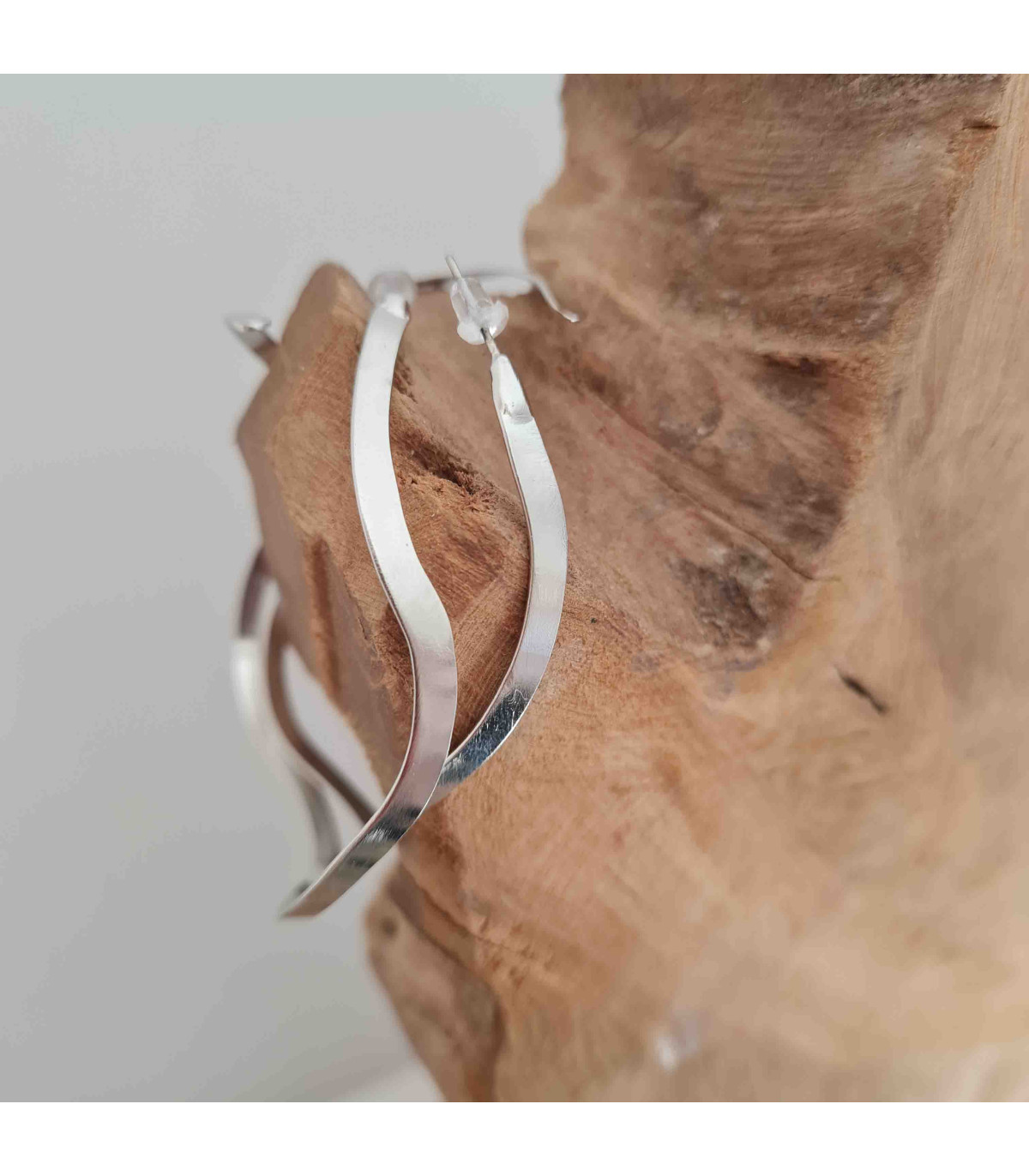 Une paire de Créoles argenté très originales ondulée au fini mat.