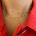 Un diamant (zirconium) percé et monté sur une chaine très fine. Un montage original pour un bijou précieux. 4 Couleurs disponibles.