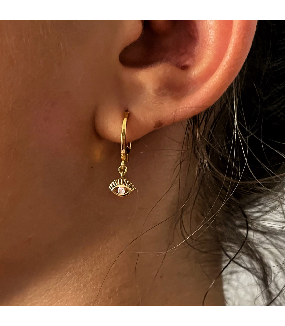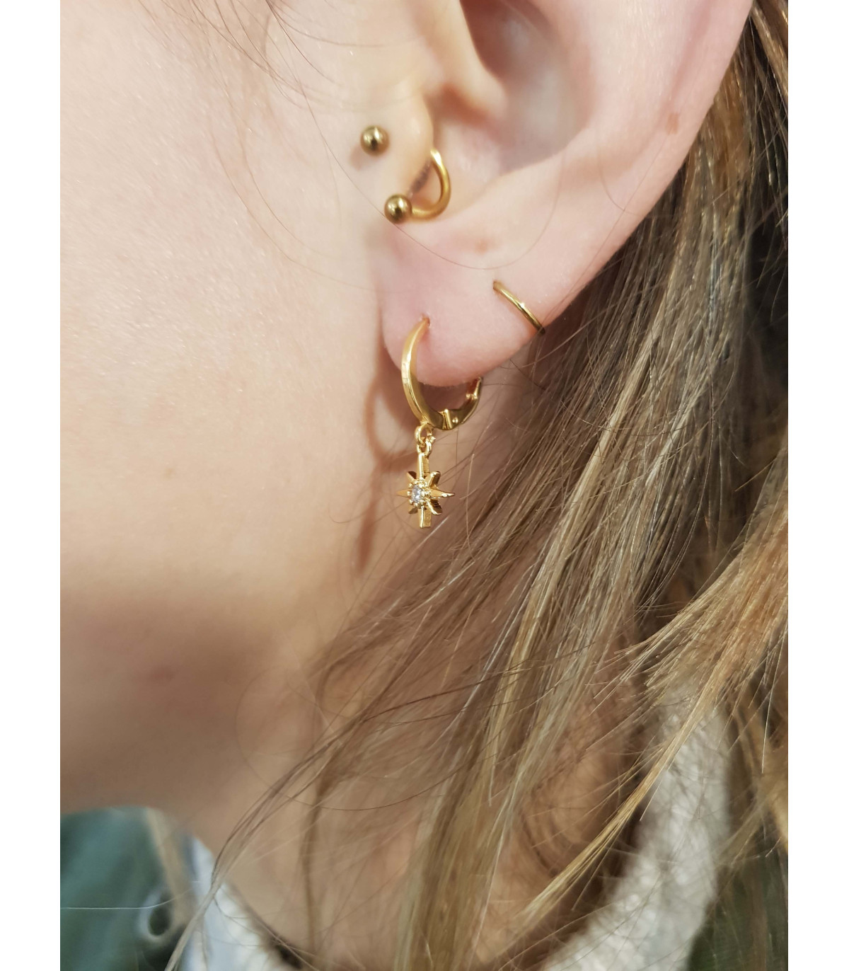 Des minis créoles rondes à porter en solo ou accumuler avec des pampilles assorties : Lune, oeil, croix, mini strass, 3 strass, marquise, étoile polaire..
