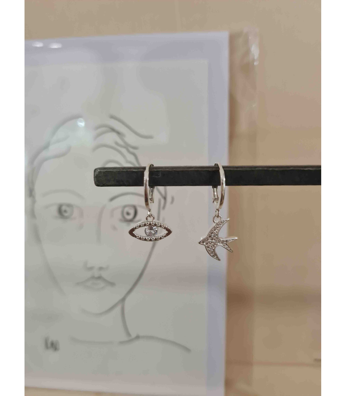 Best Seller de la boutique les mono créoles pop se déclinent en plaqué Argent avec pampilles en strass blanc.