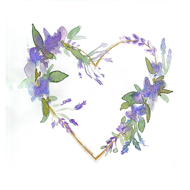 Une superbe Carte dessinée à la main par Emma Darcy, représentant un Coeur ou Ex-Voto, assortie d'une belle enveloppe cartonnée.